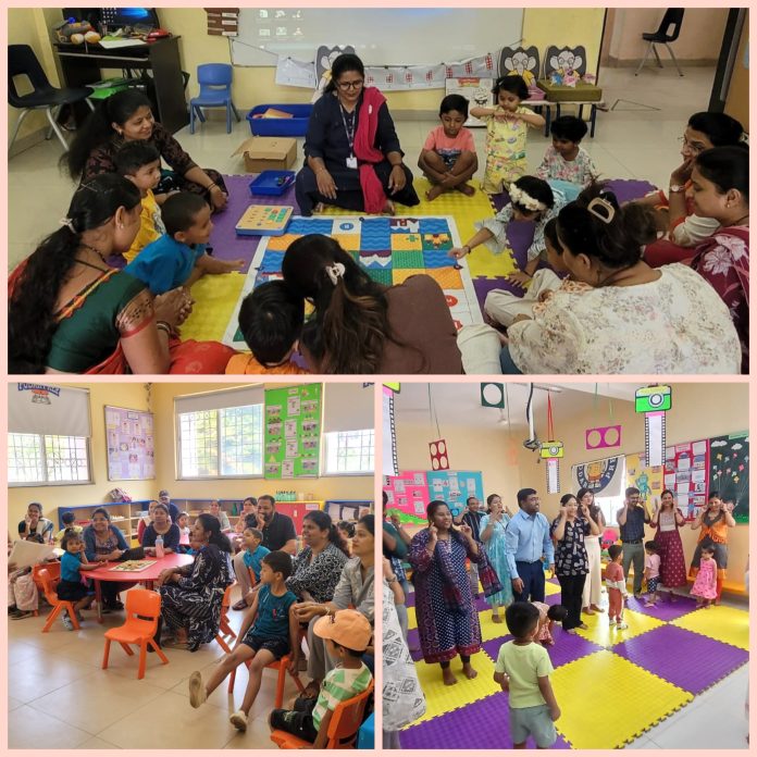 उपक्रमादरम्यान पालकांनी सर्कल टाइम, गोष्टी सांगणे, संगीत व हालचाली, तसेच खेळावर आधारित विविध उपक्रमांमध्ये उत्साहाने सहभाग घेतला. या अनुभवातून मुलांमध्ये भाषा कौशल्य, संख्याज्ञान, सर्जनशीलता, सामाजिक कौशल्ये आणि आत्मविश्वास कसा विकसित होतो, याची प्रत्यक्ष जाणीव पालकांना झाली.