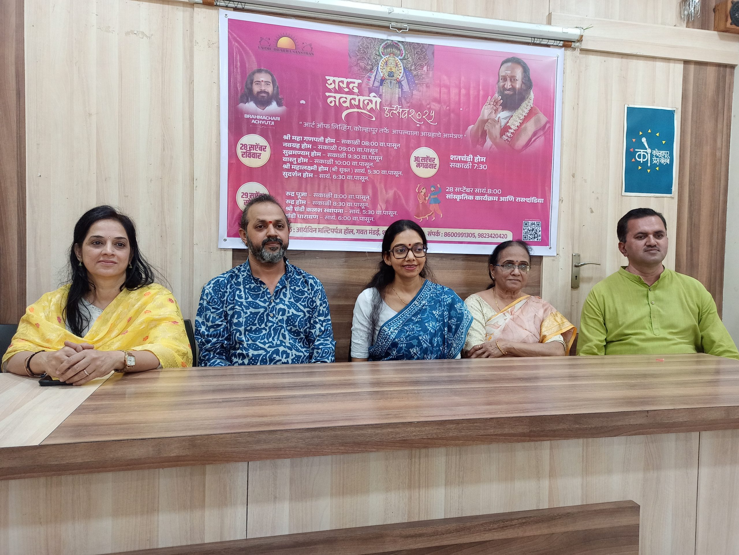 श्री श्री रविशंकरजी संस्थापित आर्ट ऑफ लिविंगची संलग्न संस्था वैदिक धर्म संस्थान, कोल्हापूर च्यावतीने शरद नवरात्रोत्सवामध्ये महाचंडी होमसह विविध होम, पूजा आणि सांस्कृतिक कार्यक्रमांचे आयोजन करण्यात आले आहे. कार्यक्रम दि. २८ ते ३० सप्टेंबर या कालावधीत सकाळी आठ पासून आयर्विन मल्टीपर्पज हॉल, गवत मंडई, शाहूपुरी कोल्हापूर येथे होणार असल्याची माहिती समन्वयक दिव्या चंदवानी आणि आशिष चंदवानी यांनी पत्रकार परिषदेत दिली.