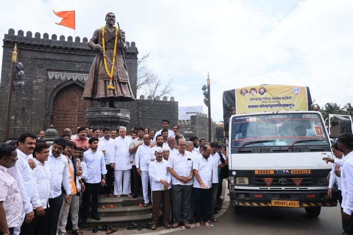 पूरामुळे जनजीवन उद्ध्वस्त झालेल्या मराठवाड्याला मदत करण्यासाठी धान्यासह किराणा सामान, प्रथमोचार साहित्य, सॅनिटरी पॅडस, चप्पल, पाणी बॉटल्स, कपड्यांपासून ते ब्लँकेटस, चटईपर्यत कोल्हापुरातील प्रत्येकान आपापल्या परीने खारीचा वाटा उचलला. यातून तब्बल २७ टेम्पो भरुन गोळा झालेली मदत सोमवारी खासदार शाहू छत्रपती आणि काँग्रेसचे विधान परिषदेतील गटनेते आमदार सतेज पाटील यांच्या उपस्थितीत मराठवाडा आणि सोलापूर जिल्ह्याकडे २५ टेम्पो मदत पाठवण्यात आली. जमा झालेली मदत धाराशिव, नांदेड, परभणी, लातूर आणि सोलापूर या जिल्ह्यांमध्ये प्रत्येकी पाच टेम्पो पाठवण्यात आले.