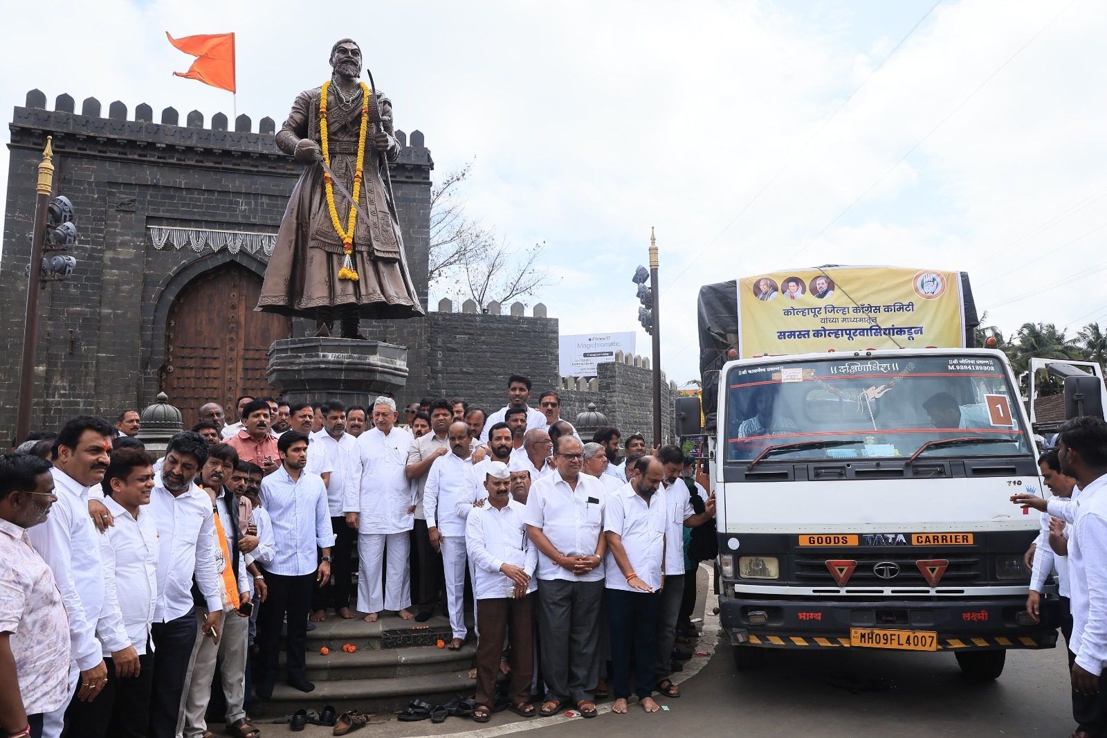 विधान परिषदेतील काँग्रेसचे गटनेते आ. सतेज पाटील यांनी मराठवाड्यातील पूरग्रस्तांना मदतीसाठी आवाहन केलं होतं. त्यानुसार जमा झालेली मदत मराठवाड्यातील पूरग्रस्तांच्याकडे सोमवारी पाठवण्यात आली. कसबा बावडा, भगवा चौक येथील छत्रपती शिवाजी महाराजांच्या पुतळ्याला अभिवादन केल्यानंतर खासदार शाहू महाराज आणि आमदार सतेज पाटील यांच्या उपस्थितीत मदतीची ही वाहने मराठवाड्याकडे रवाना झाली.