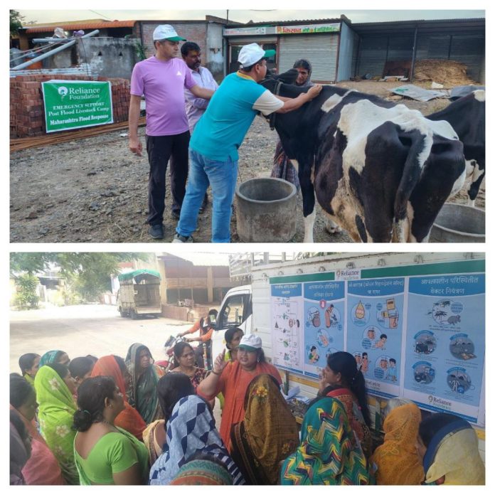 या रहिवाशांच्या गुरांचे आरोग्य जपण्यासाठी रिलायन्स फाउंडेशनतर्फे सोलापूर जिल्हा प्रशासनाच्या सहाय्याने पशुवैद्यकीय शिबिरे आयोजित करण्यात येत आहेत. येथे साथीचे आजार टाळण्यासाठी या गुरांना औषधे तसेच उपचार देण्यात येत आहेत. विशेषतः हॅमोरॅगिक सेप्टीसेमिया आणि ब्लॅक क्वार्टर (एच एस-बी क्यू) या रोगांमुळे पुरानंतर मोठ्या प्रमाणावर जनावरांचा मृत्यू होतो. त्यामुळे या रोगांचा प्रसार थांबवण्यावर भर दिला जात आहे. पशुसंवर्धन विभागाने या रोगांच्या धोक्याबाबत घेतलेल्या आढाव्यानुसार रिलायन्स फाउंडेशनने तेथे सुमारे बावीस हजार गुरांना एच एस-बी क्यू लस दिली. पुराचा सर्वात जास्त फटका बसलेल्या विभागात पशुखाद्याच्या पिशव्या देखील शेतकऱ्यांना दिल्या जात आहेत. बीड जिल्ह्यात गोठ्यांमध्ये जनावरे असलेल्या वसाहतींसाठी आरोग्य शिबिरे आयोजित केली जात आहेत.