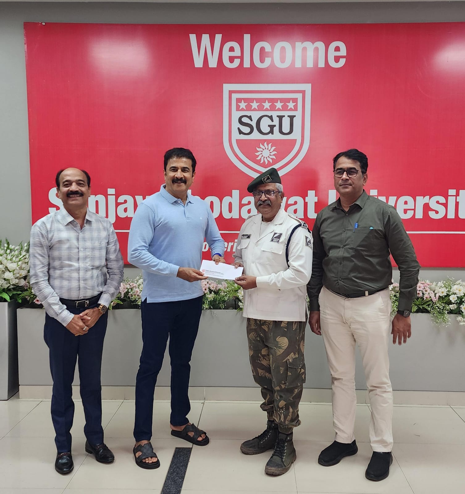 संजय घोडावत विद्यापीठात झालेल्या कार्यक्रमात चेअरमन संजय घोडावत यांनी व्हाईट आर्मीचे अध्यक्ष अशोक रोकडे यांना अन्नछत्रासाठीचा धनादेश सुपूर्द केला. यावेळी विश्वस्त विनायक भोसले, संचालक डॉ. विराट गिरी आदी मान्यवर उपस्थित होते.