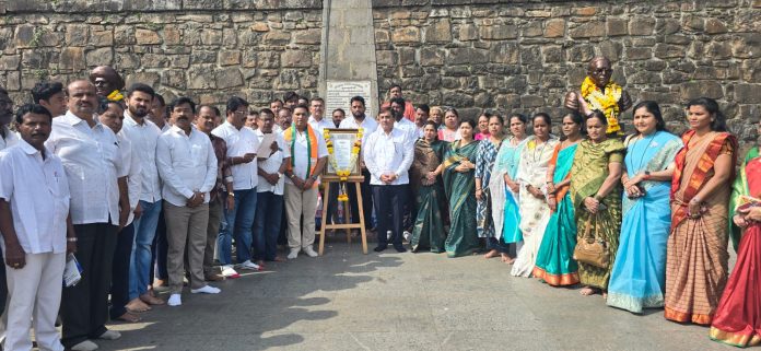 भारतीय जनता पार्टी कोल्हापूरच्या वतीने भारतीय संविधान दिन उत्साहात साजरा करण्यात आला. ऐतिहासिक बिंदू चौकात महामानव डॉ. बाबासाहेब आंबेडकर, क्रांतीसूर्य महात्मा ज्योतिबा फुले यांच्या पुतळ्यांना खासदार धनंजय महाडिक, जिल्हाध्यक्ष विजय जाधव यांच्या हस्ते पुष्पहार अर्पण करून अभिवादन करण्यात आले. तसेच यावेळी संविधान प्रतिमेचे पूजन देखील करण्यात आले. संविधानाचे सामूहिक वाचन करून लोकशाहीच्या पायाभूत तत्त्वांना आदरांजली वाहण्यात आली.