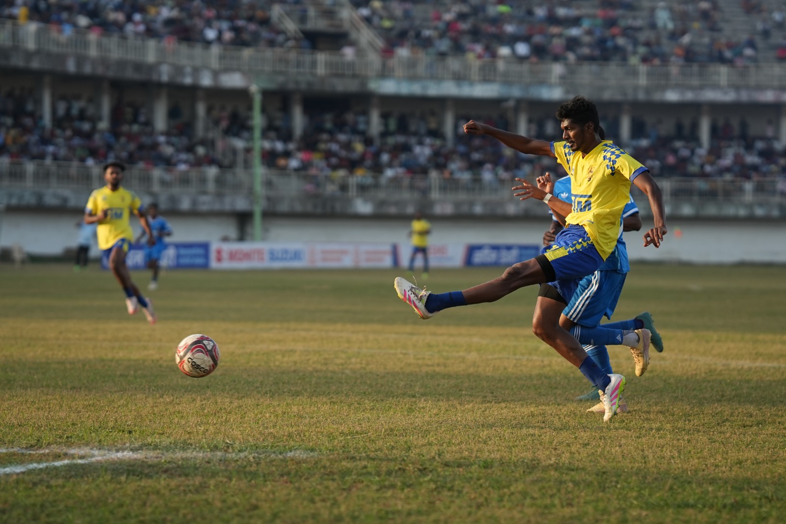 छत्रपती शाहू स्टेडियमवर दुपारच्या सत्रात पाटाकडील (अ) आणि दिलबहार यांच्यातील सामना एकतर्फी झाला. पूर्वार्धात पाटाकडील (अ) कडून झालेल्या चढाईत मोठ्या डी बाहेरून मारलेल्या जोरदार फटक्यावर ओमकार मोरेने पहिला गोल नोंदविला. १७व्या मिनिटास मिळालेल्या १-० गोलच्या आघाडीनंतर ऋषिकेश मेथे-पाटील, ओमकार मोरे, प्रथमेश हेरेकर, दिग्विजय बसगरे, नबी खान यांनी वेगवान चाली रचल्या पण ते गोलची आघाडी वाढवू शकले नाहीत. दिलबहारच्या फेबिन गिब्सचा फटका गोलरक्षक अमर गवळीने तितक्याच तत्परतेने परतावून लावत गोलचे संकट टाळले. प्रथम भोसले, स्वयंम साळोखे, गंधर्व घाटगे, सार्थक मगदूम यांनी केलेल्या चढाया समन्वाचा अभाव आणि दिशाहीन फटाक्यांमुळे वाया गेल्या.