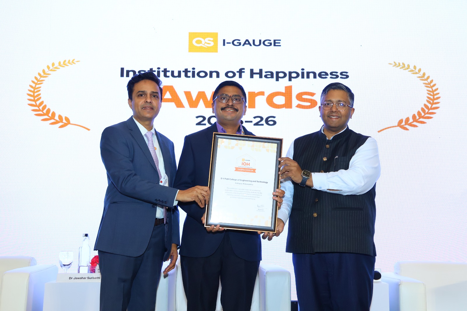 डी. वाय. पाटील अभियांत्रिकी महाविद्यालयाला क्युएस आय-गेज ‘इन्स्टिट्यूट ऑफ हॅपिनेस’ पुरस्कार