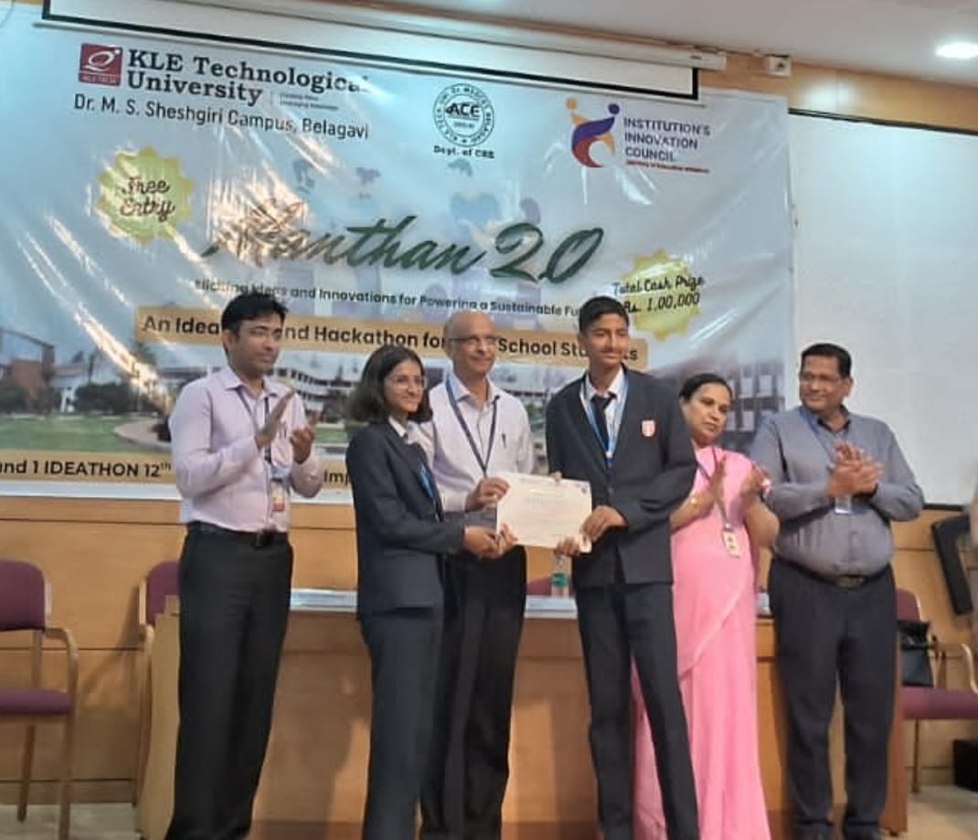 केएलई टेक्नॉलॉजिकल युनिव्हर्सिटी, बेळगावी येथील संगणकशास्त्र (CSE) व संगणकशास्त्र (AI) विभागांच्या वतीने मंथन 2.0 – आंतरशालेय आयडिएथॉन व हॅकथॉन या प्रतिष्ठित स्पर्धेत संजय घोडावत इंटरनॅशनल स्कूल कोल्हापूर येथील विद्यार्थ्यांनी उल्लेखनीय यश संपादन करत संस्थेच्या शिरपेचात मानाचा तुरा रोवला आहे. या स्पर्धेत ८० हून अधिक शाळांमधील ३०० पेक्षा जास्त विद्यार्थ्यांनी सहभाग घेतला होता. स्पर्धा अत्यंत चुरशीची व नवोन्मेषाला चालना देणारी ठरली.