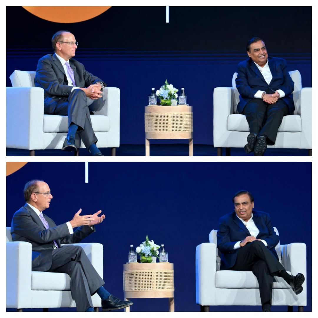 मुंबईत आयोजित जियो-ब्लॅकरॉकच्या ‘इन्व्हेस्टिंग फॉर ए न्यू एरा’ या कार्यक्रमात ब्लॅकरॉकचे सीईओ लॅरी फिंक यांच्यासोबत झालेल्या फायरसाइड चर्चेदरम्यान अंबानी यांनी भारताच्या विकासाचा स्पष्ट आराखडा मांडला.