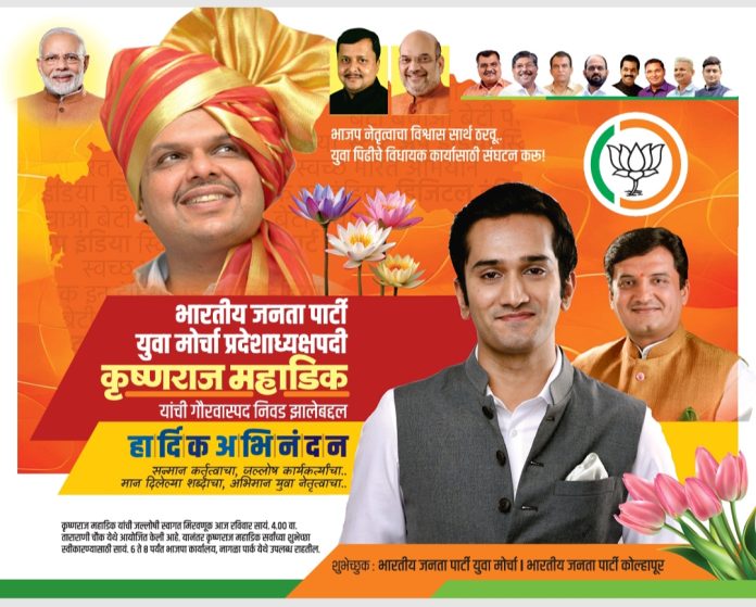 भाजप युवा मोर्चाचे नूतन प्रदेशाध्यक्ष कृष्णराज महाडिक यांचे आज कोल्हापुरात आगमन
