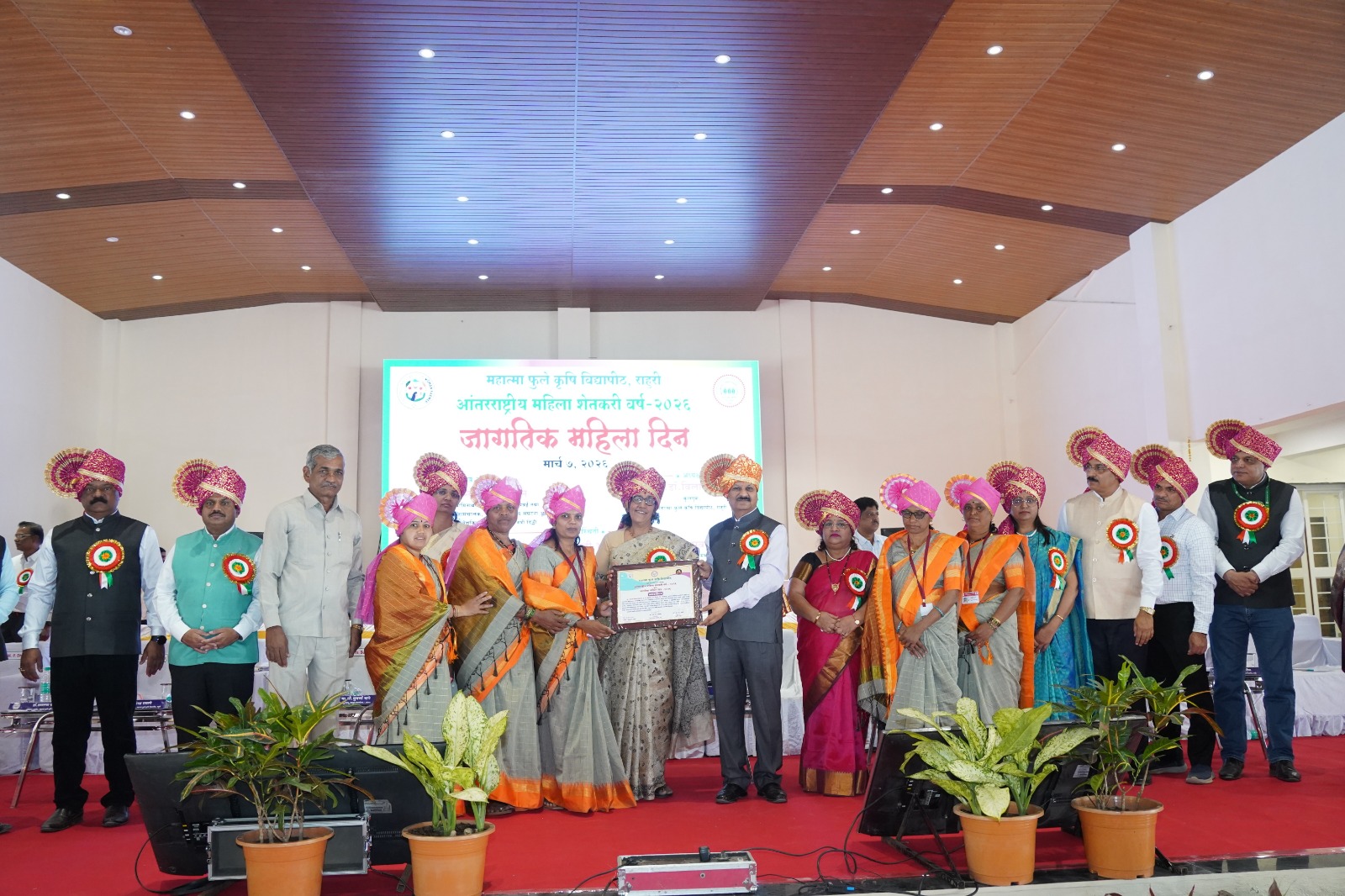 महात्मा फुले कृषी विद्यापीठ, राहुरी येथे ‘आंतरराष्ट्रीय महिला शेतकरी वर्ष २०२६’ आणि ‘जागतिक महिला दिना’निमित्त आयोजित कार्यक्रमात शेडशाळ (ता. शिरोळ) येथील स्व. आप्पासाहेब ऊर्फ सा. रे. पाटील महिला फाउंडेशन बीजबँकेचा सन्मान करण्यात आला. बीजमाता शमशादबी पठाण आणि वैशाली संकपाळ यांनी हा सन्मान स्विकारला. स्थानिक बियाणे जतन आणि संवर्धनासाठी केलेल्या कार्याची दखल घेत त्यांना सन्मानित करण्यात आले. कुलगुरू डॉ. विलास खर्चे यांच्या हस्ते हा सत्कार झाला.