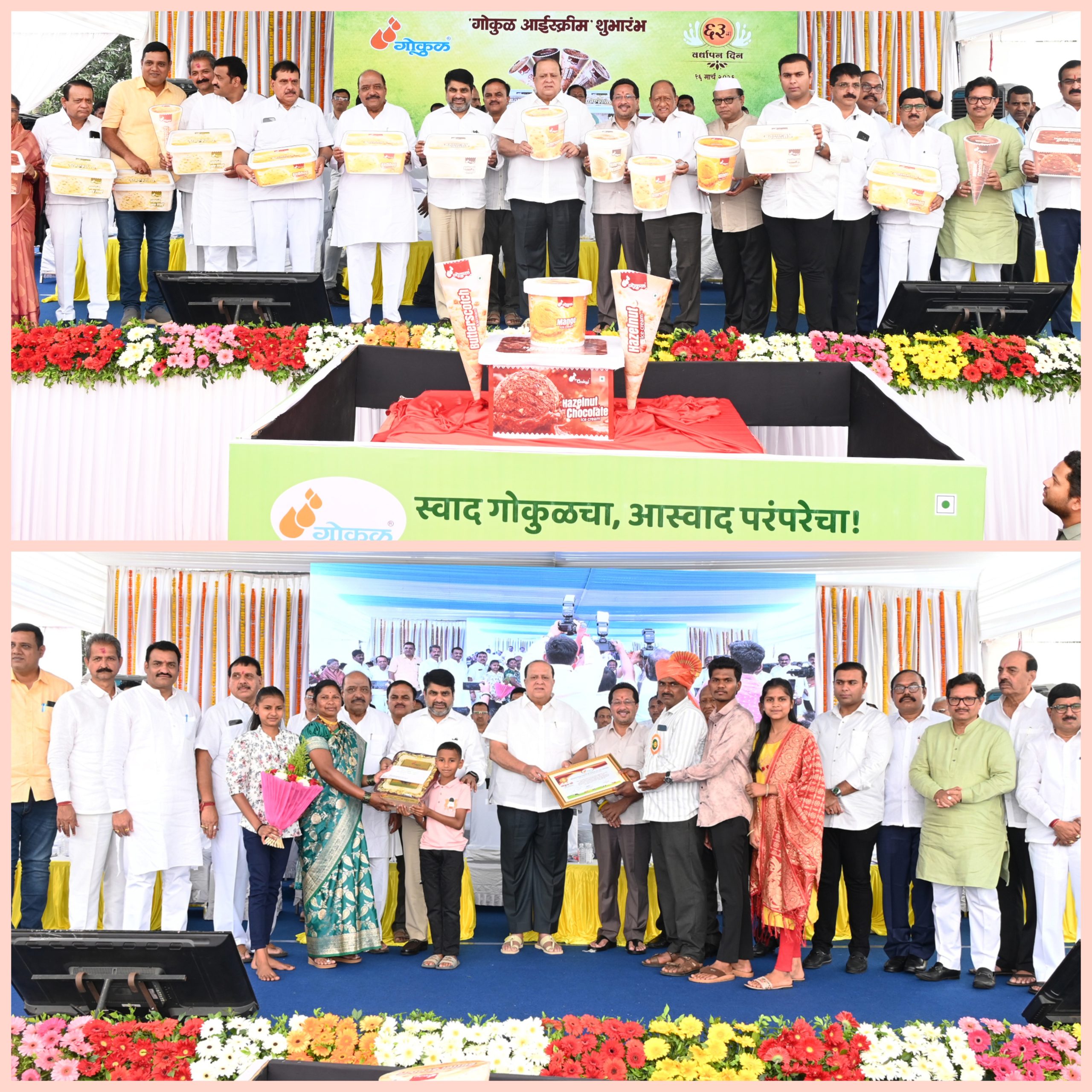 मंत्री हसन मुश्रीफ, आ. सतेज पाटील, आ. चंद्रदीप नरके, गोकुळचे चेअरमन नविद मुश्रीफ, ज्येष्ठ संचालक विश्वासराव पाटील, अरुण डोंगळे व संचालक मंडळ आणि प्रमुख मान्यवर यांच्या उपस्थितीत ‘गोकुळ आईस्क्रीम’चा शुभारंभ करण्यात आला. एमआयडीसी गोकुळ शिरगाव येथील गोकुळ प्रकल्प येथे झालेल्या या कार्यक्रमात मान्यवरांच्या हस्ते ‘गोकुळ श्री’ पुरस्कार व विविध बक्षीस वितरण उत्साहात पार पडले. तसेच यावेळी कोल्हापूर, पुणे व मुंबई येथील जास्तीत जास्त दूध व दुग्धजन्य पदार्थ विक्री करणाऱ्या दूध वितरकांचा सत्कार करण्यात आला.