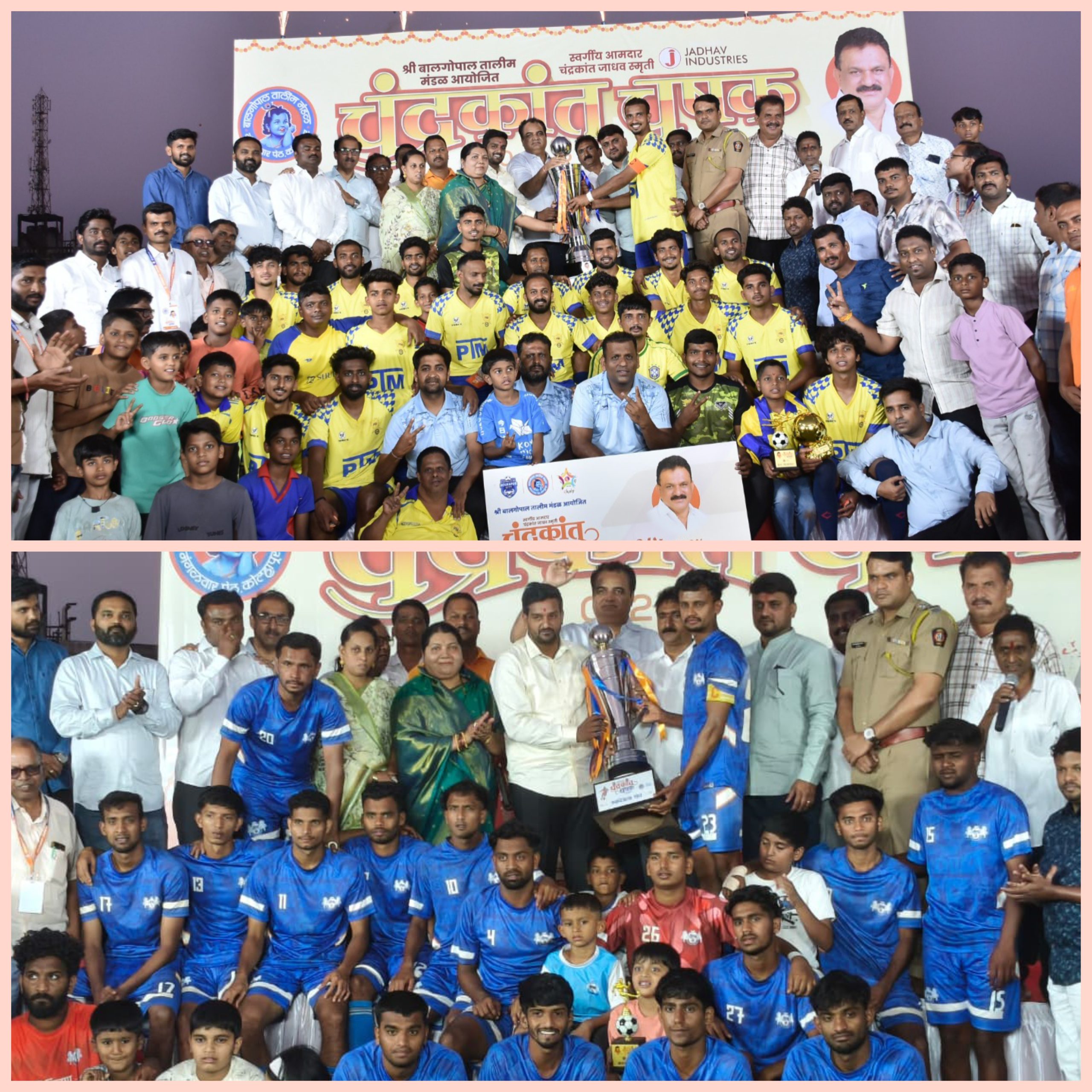 बालगोपाल तालीम मंडळ आयोजित व जाधव इंडस्ट्रीज पुरस्कृत चंद्रकांत चषक फुटबॉल स्पर्धत रविवारी (दि. २९) खंडोबा तालीम मंडळ आणि पाटाकडील तालीम मंडळ यांच्यात विजेतेपदासाठी लढत झाली. छत्रपती शाहू स्टेडियमवर झालेल्या हा दोन्ही तुल्यबळ संघातील सामना पाहण्यासाठी फुटबॉलशौकिनांची मोठी गर्दी होती. दोन्ही संघाकडून परस्परांचे गोलक्षेत्र भेदणाऱ्या चढाया पण गोलची नोंद झाली नाही. पूर्वार्धात गोलफलक कोराच राहिला.