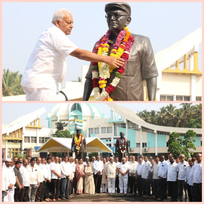 याप्रसंगी कारखान्याचे मार्गदर्शक संचालक उद्यान पंडित गणपतराव आप्पासाहेब पाटील यांनी स्व. सा.रे. पाटील यांच्या पूर्णाकृती पुतळ्यास पुष्पहार अर्पण केला. तसेच स्व. दत्ताजीराव कदम अण्णा यांच्या पुतळ्यास चेअरमन रघुनाथ देवगोंडा पाटील यांनी पुष्पहार अर्पण केला. त्याचप्रमाणे स्व. दिनकरराव यादव यांच्या पूर्णाकृती पुतळ्यास संचालक रणजीत अशोक कदम व स्व. विश्वासराव घोरपडे सरकार यांच्या पूर्णाकृती पुतळ्यास व्हाईस चेअरमन शरदचंद्र विश्वनाथ पाठक यांनी पुष्पहार अर्पण करून अभिवादन केले. तसेच उपस्थित मान्यवरांनी पुष्पहार अर्पण करून अभिवादन केले. यावेळी उपस्थित सर्व संचालक व इतर मान्यवरांनी पुष्पकमल अर्पण करून अभिवादन केले.