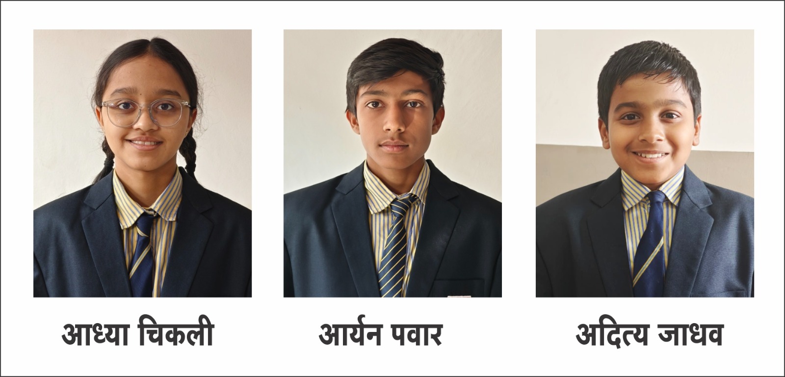 आर्यन प्रसन्न पवार, आध्या पुशान चिकली, आदित्य अभिजीत जाधव यांनी सुवर्णपदक पटकावले. रौप्य पदक प्राप्त करणाऱ्यांमध्ये ऐशना श्रीराम कुलकर्णी, अर्जुन विनायक बरगाले, समृद्धी रामदास बडे, चिरायू उमेश माने, शार्दुल सुश्रुत कुलकर्णी यांचा तर कांस्यपदक प्राप्त करणाऱ्यांमध्ये साची सुहास वाडकर, रुद्रराज सुरेश जाधव या विद्यार्थ्यांचा समावेश आहे.